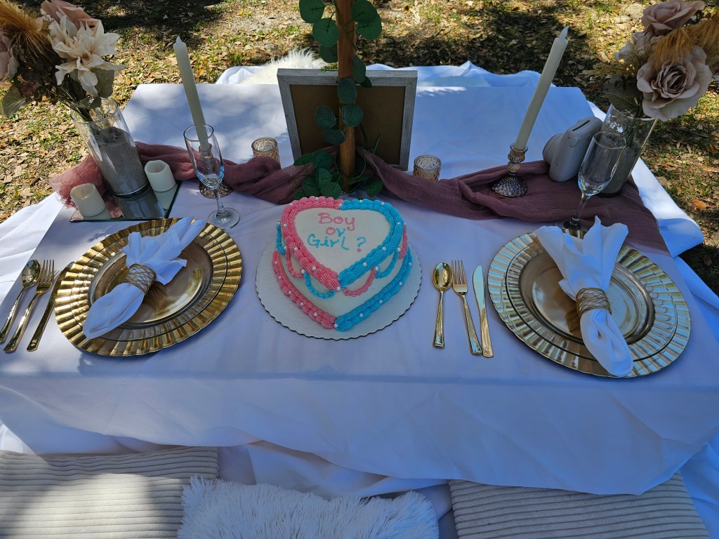 Intimate Gender Reveal Picnic setup for 2 with your choice of location and time.